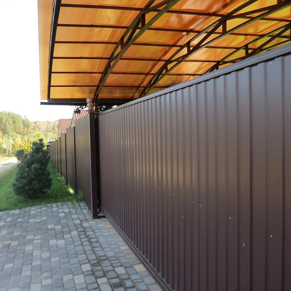 Откатные ворота из профнастила с автоматикой