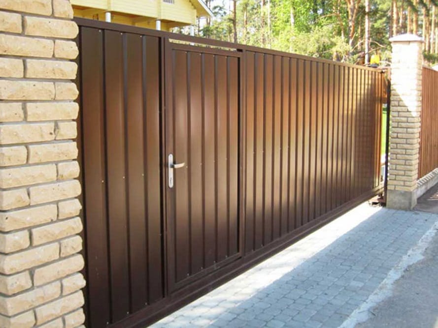 Откатные ворота из профнастила с встроенной калиткой